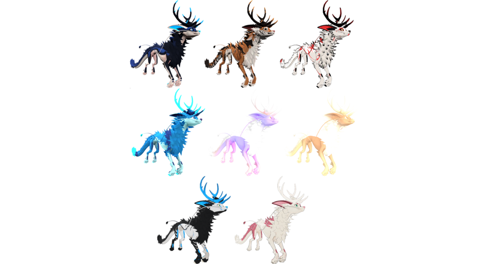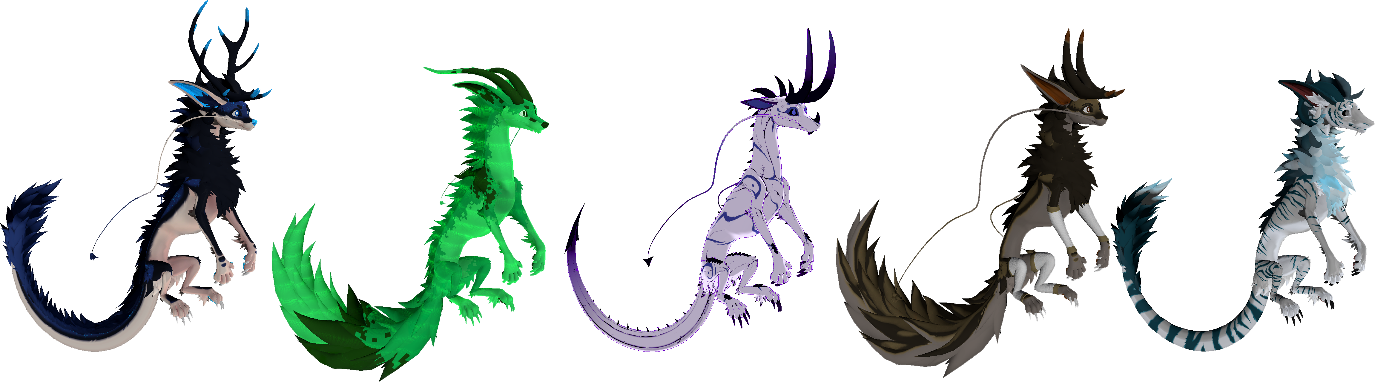 These are some of them; there's much more, including 10+ horns! You can customize your dragon to be fully fluffy, or just scales & horns! Mix and match with color regions, without ever editing the textures, too!